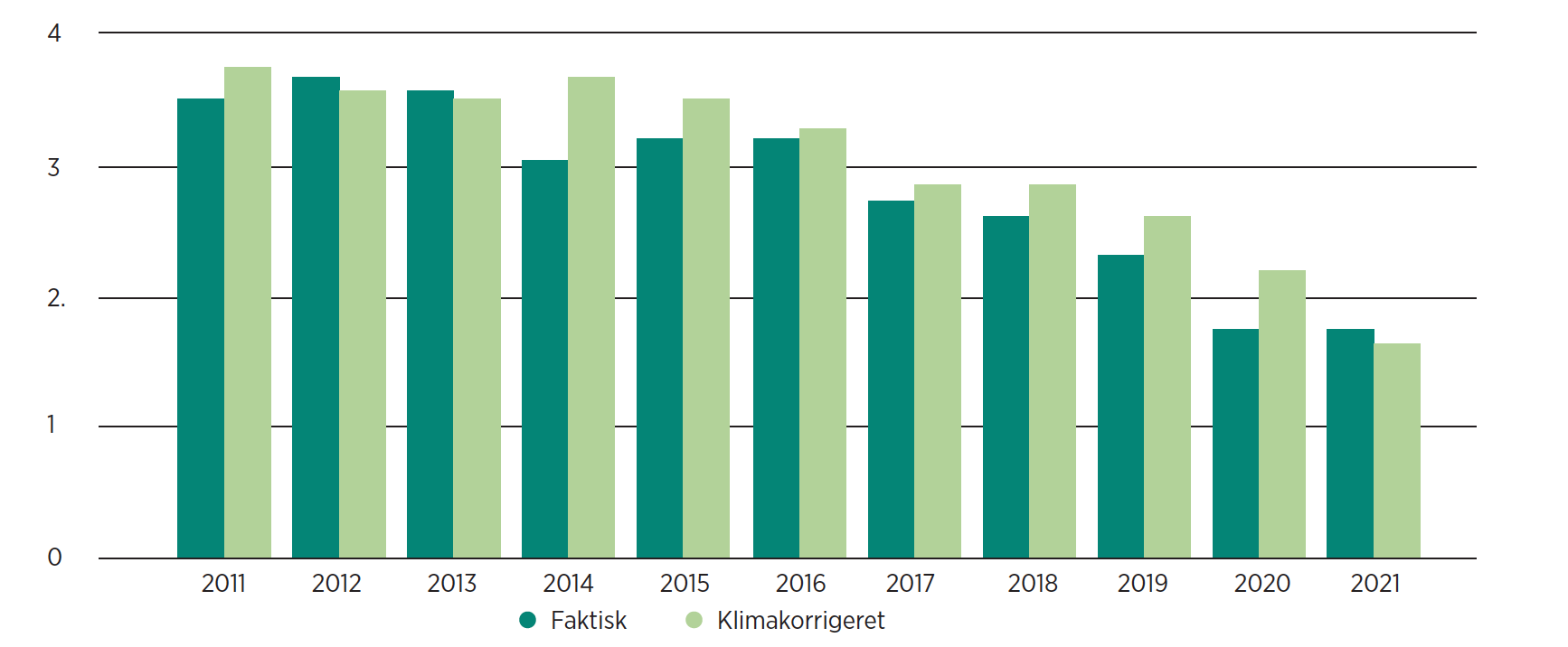 Energistyrelsen definerer det klimakorrigerede energiforbrug til opvarmningsformål som det forbrug, man ville have haft såfremt året havde været et normalår i forhold til udelufttemperaturen.