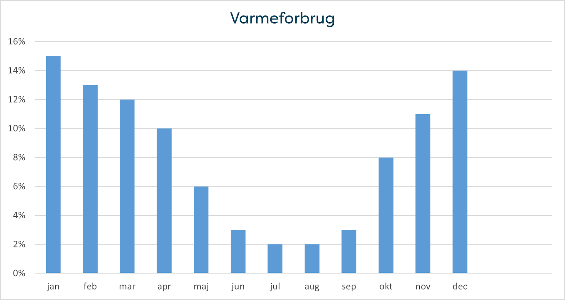 - Kortere Betalingsperiode: Da I er tilsluttet sent på året, fordeles hele årets varmeforbrug ikke ud over 12 måneder, men i stedet koncentreres i de resterende måneder af året.