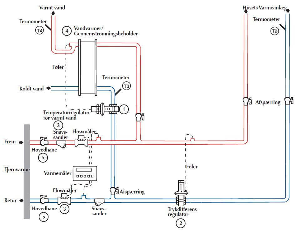 Tilslutningsdiagrammet viser hvordan installationen skal udføres. Hvis installationen ønskes opbygget på en anden måde, kan det ske efter aftale med Tørring Kraftvarmeværk.